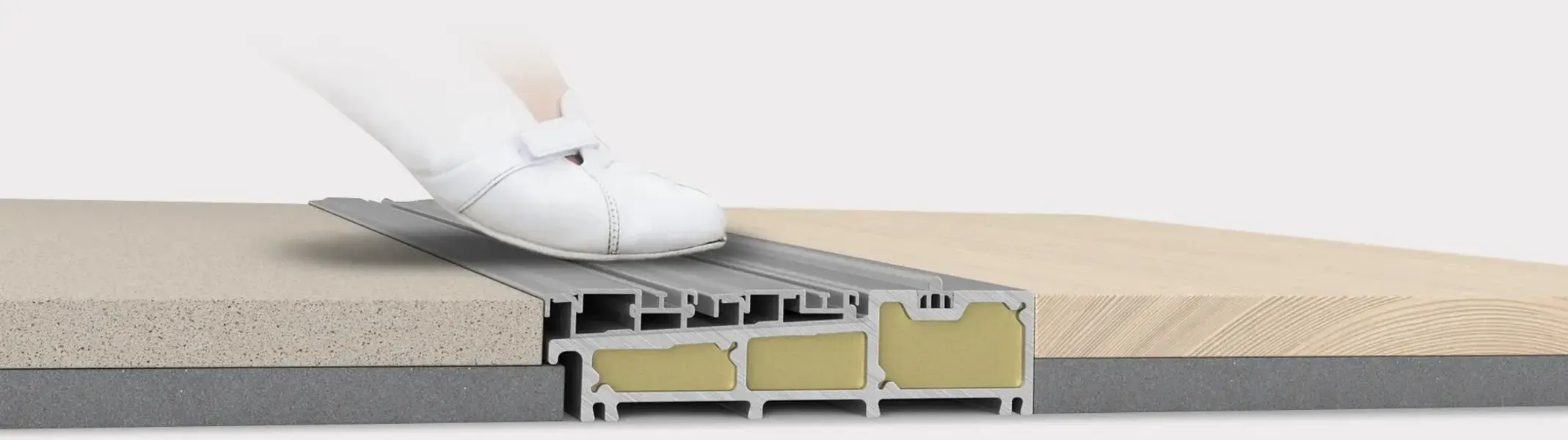 Absolute freedom of movement for all those who are restricted in their mobility. The 85 mm lift-and-slide door is available in a barrier-free version. The door frame, which looks like a continuous floor, now includes a flat threshold for a comfortable, obstacle-free transition from inside to outside. It’s easy to open and close.